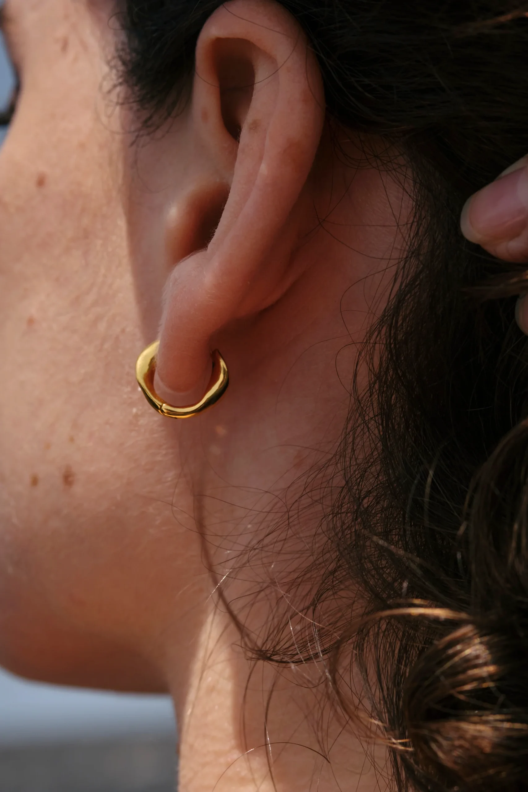 Nos mini créoles ADARA sont irrégulières et organiques, inspirées par les formes lunaires.