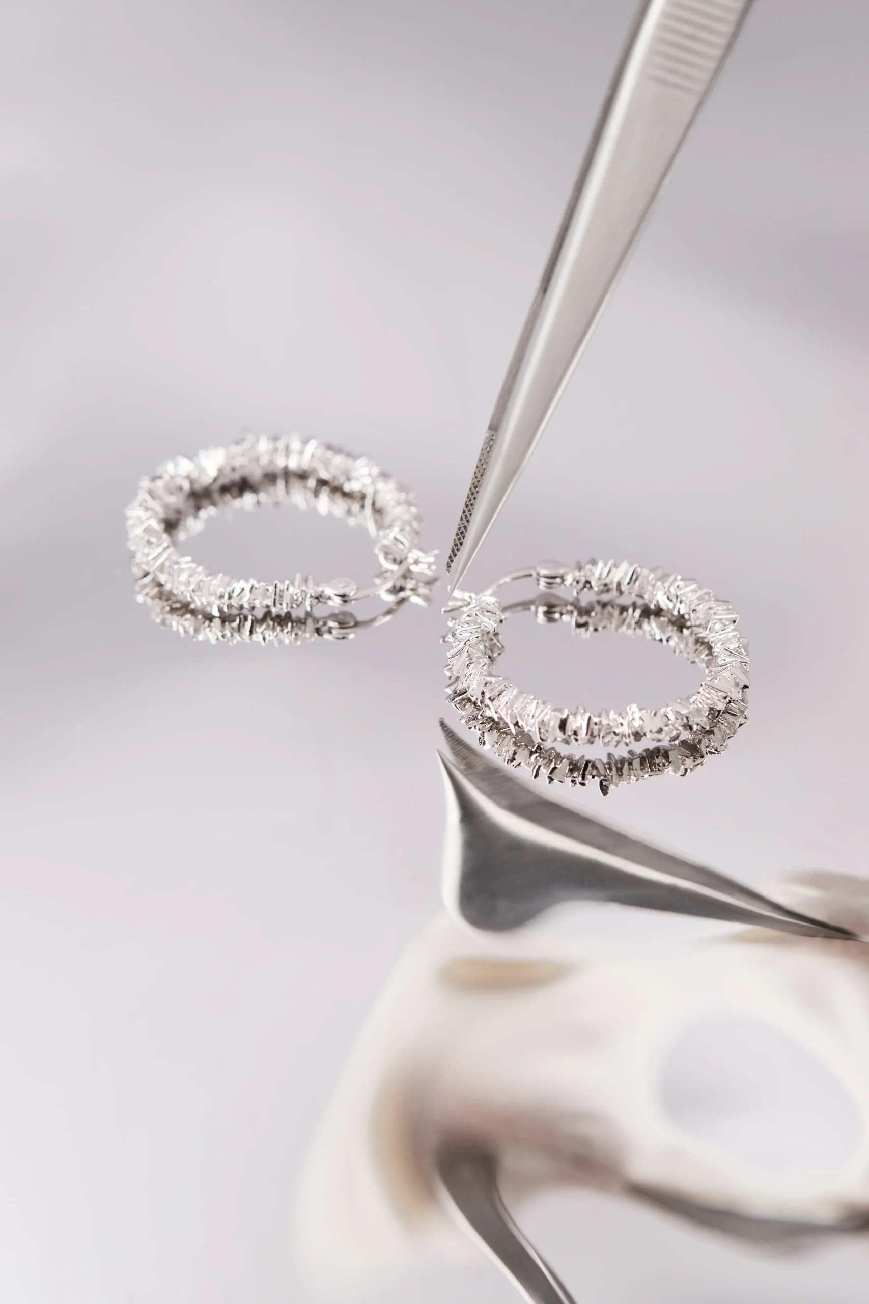 Comme un hommage aux piles de livres des bouquinistes des bords de Seine. Elles ont été travaillées à la main dans notre atelier en argent rhodié.