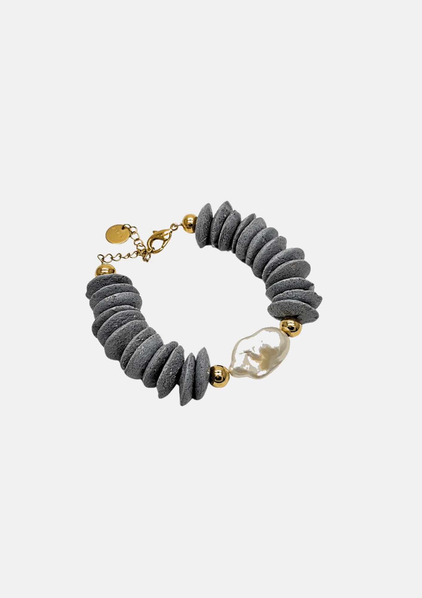 • Composition : perles africaines en céramique grise, perle de culture baroque unique (chaque pièce est différente), perles en laiton plaqué or 24 carats (3 microns).