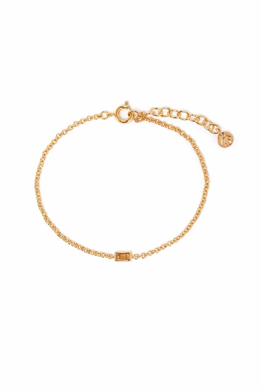 Notre bracelet Vega sublime une magnifique citrine. Pensé pour vivre à votre poignet la taille baguette de la citrine permet à la pierre d’être visible des deux côtés.