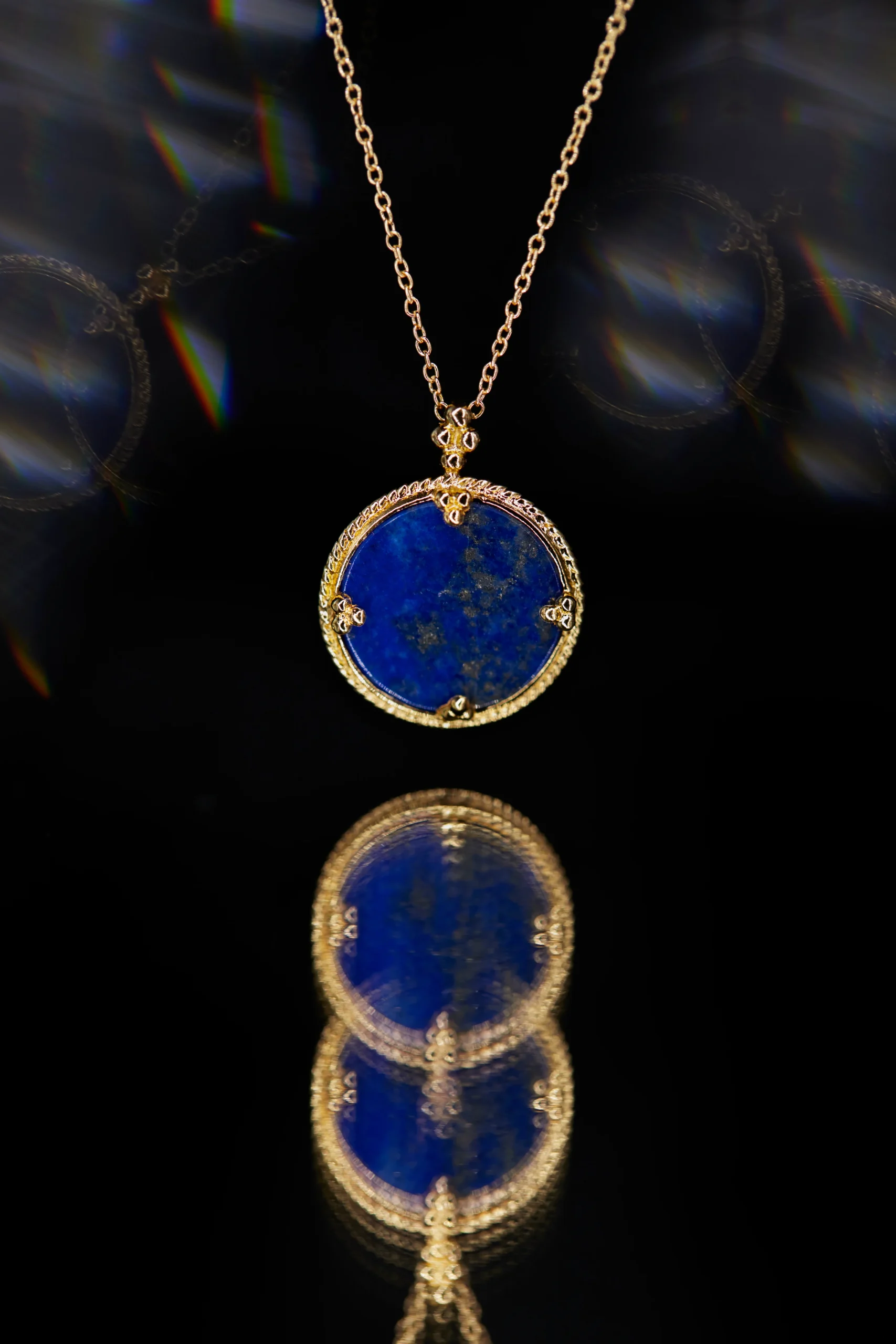 Notre collier Alhena est une médaille en pierre fine naturelle sertie avec amour.