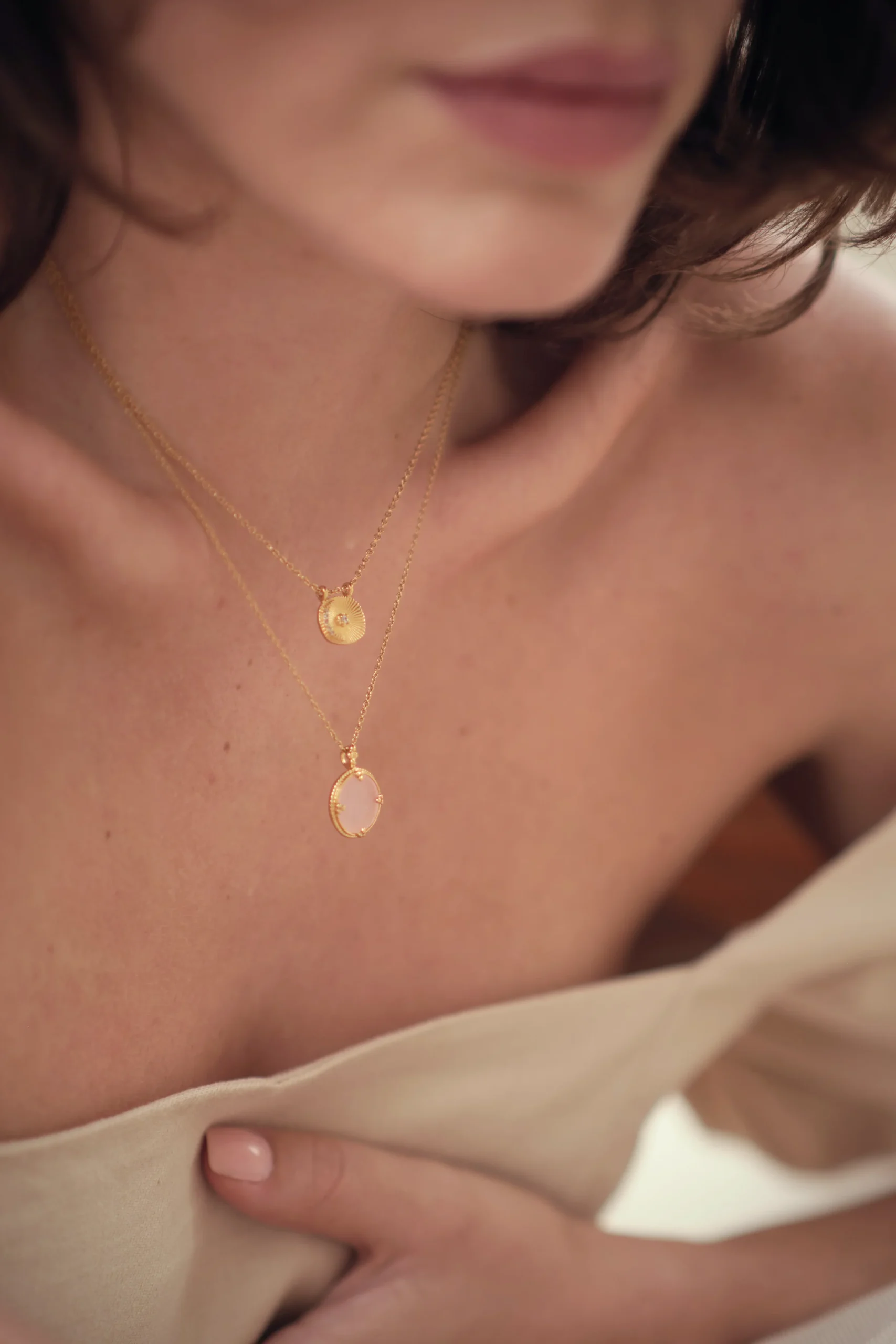 Notre collier Alhena est une médaille en pierre naturelle sertie avec amour.