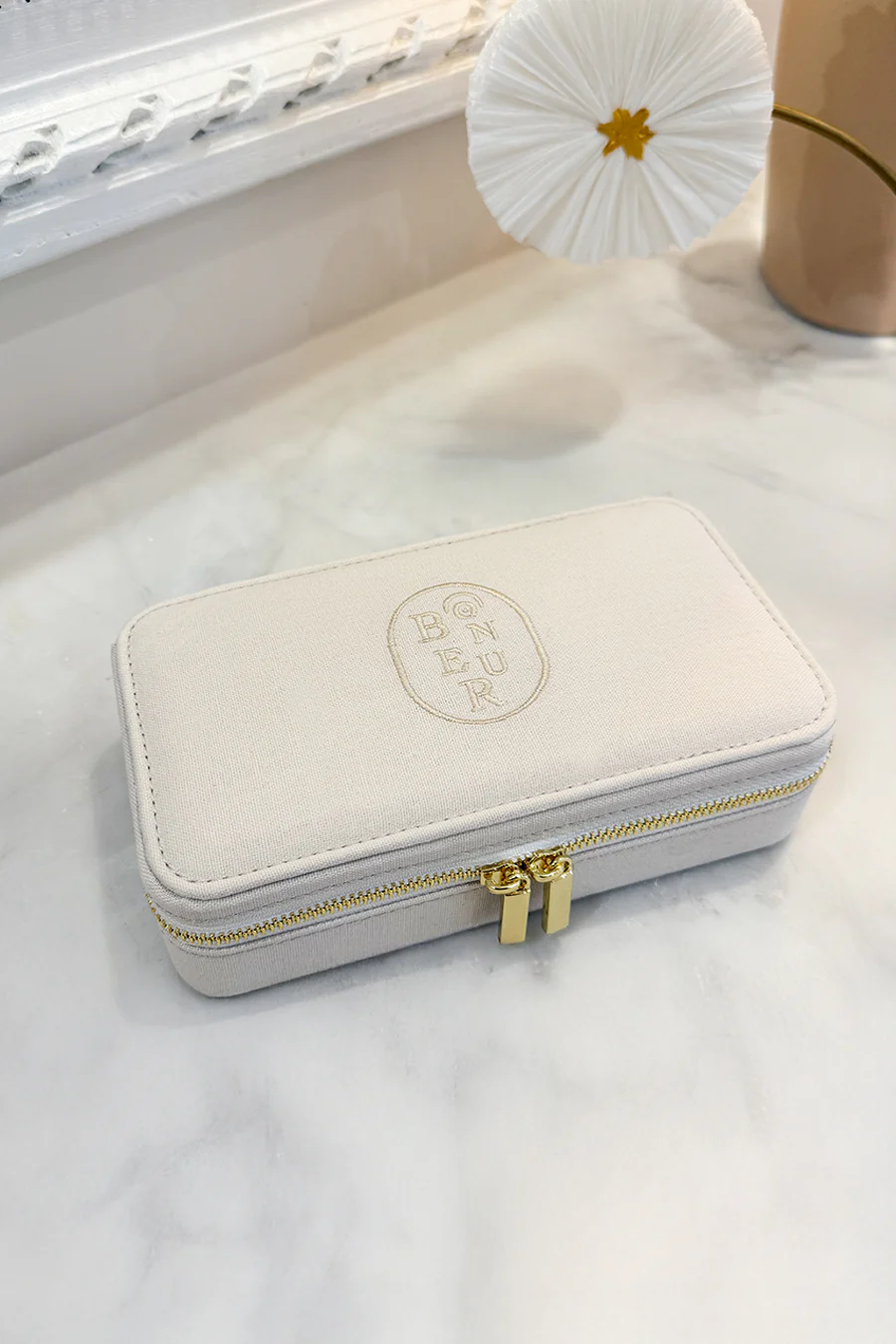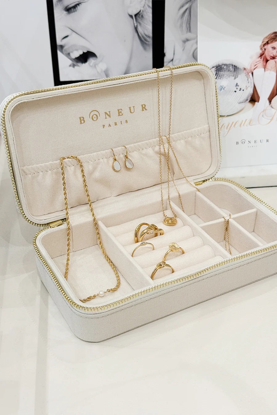Boîte à bijoux en lin naturel, pour ranger vos trésors.