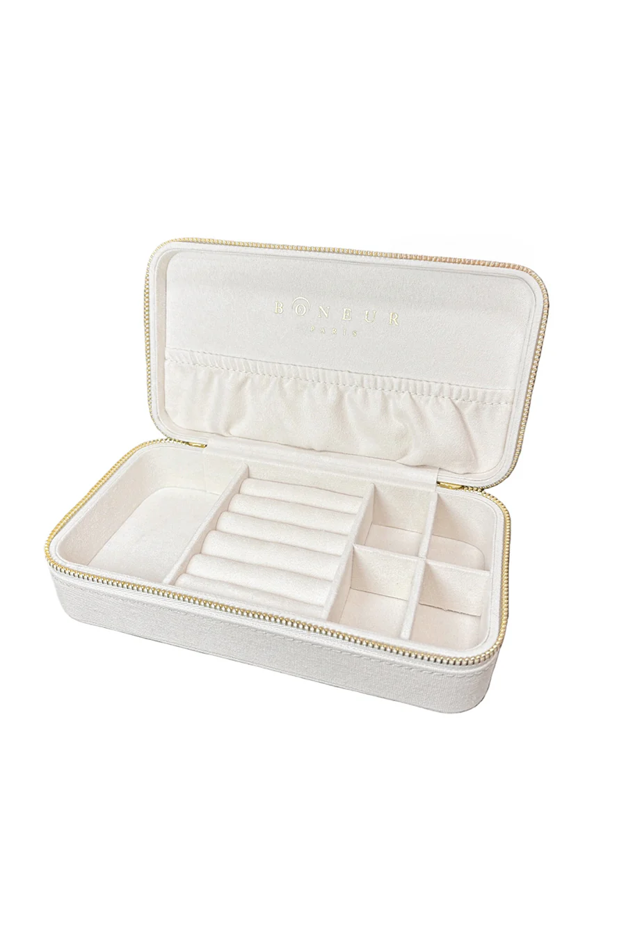 Plusieurs compartiments vous permettront d’organiser vos différents bijoux : bagues, colliers, bracelets, boucles d’oreilles…