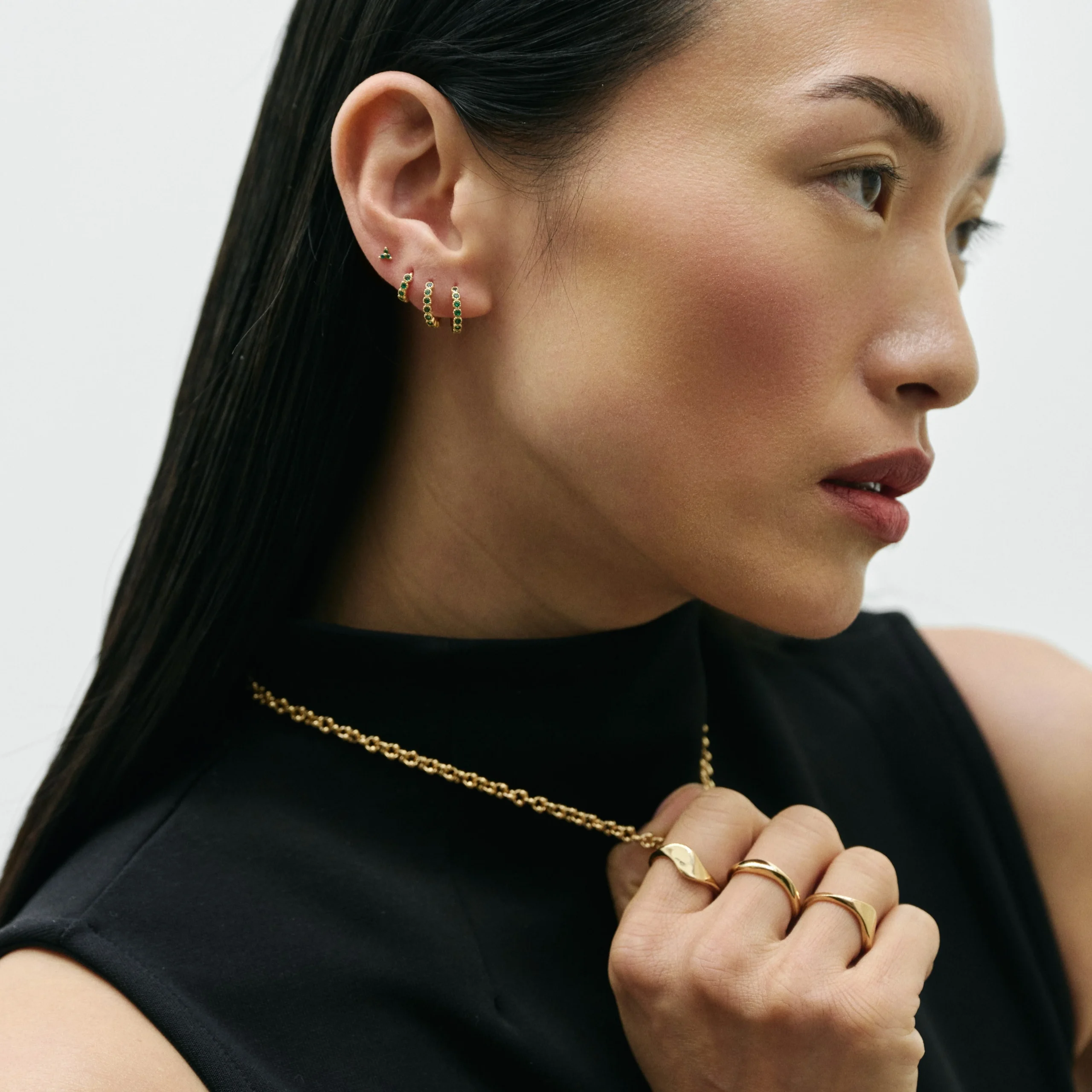 - Composition : Plaqué or 18 carats, 3 microns et zirconiums verts