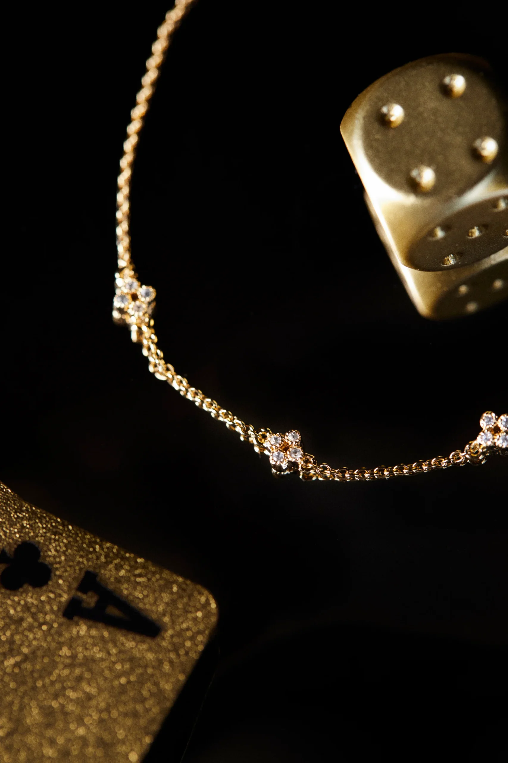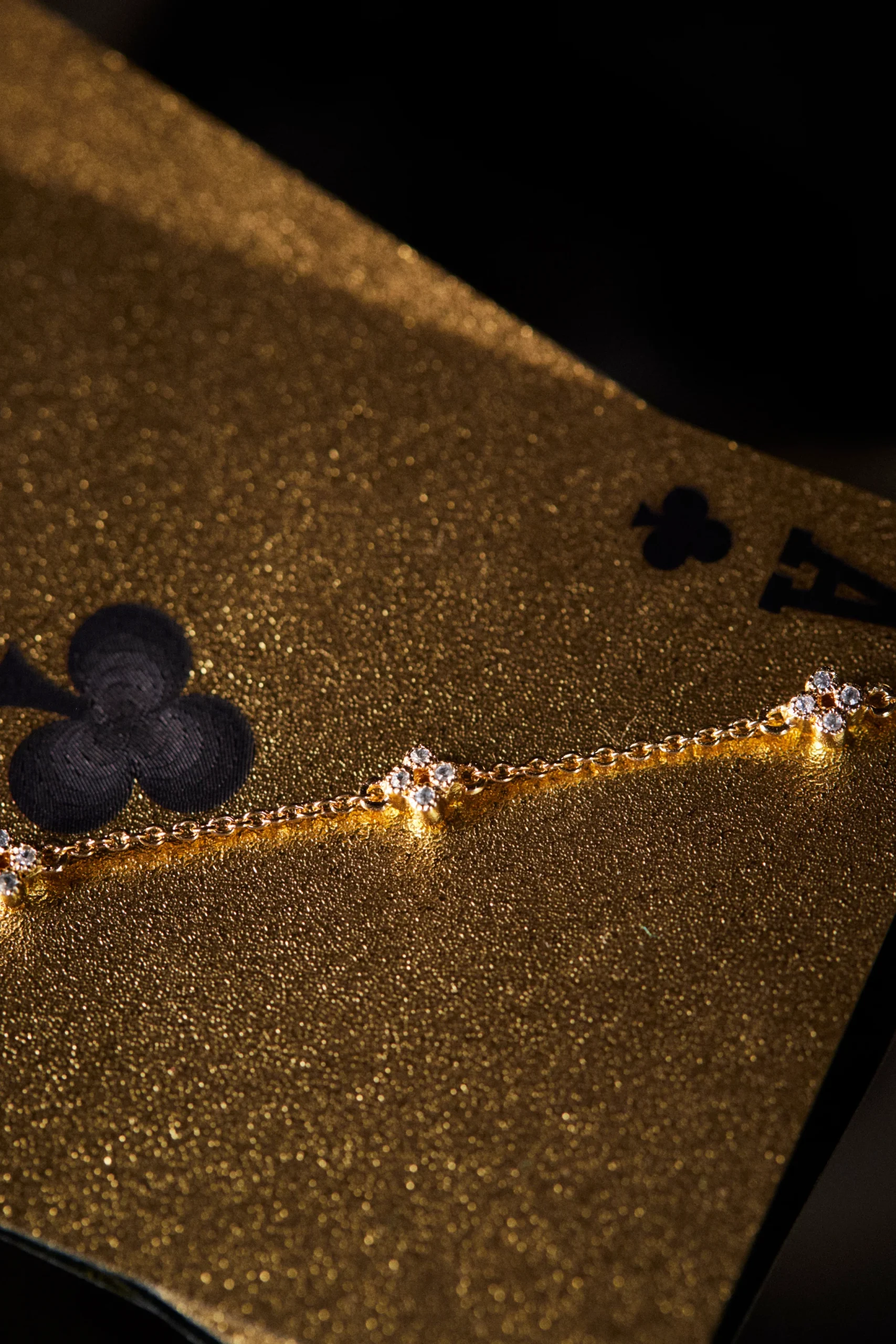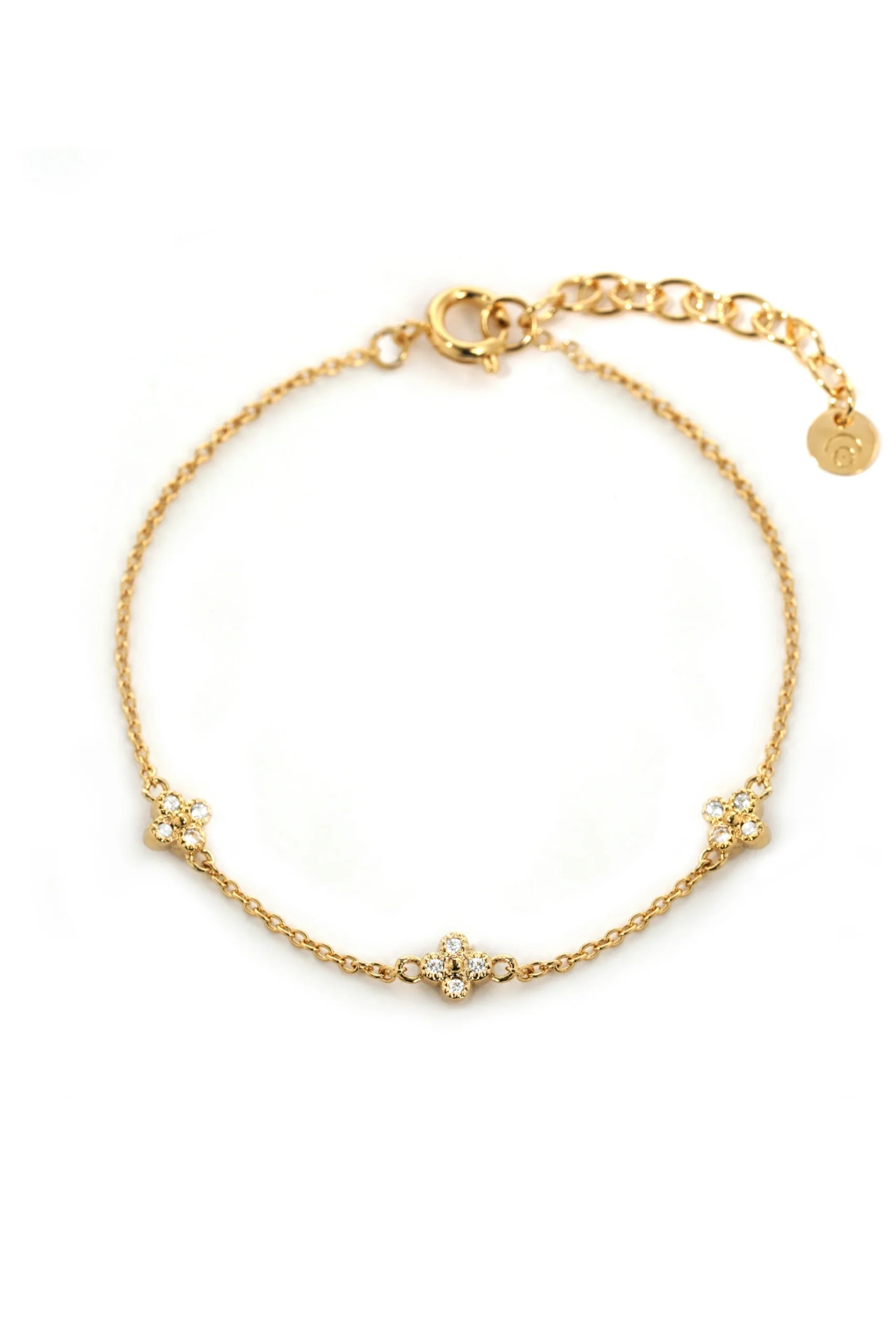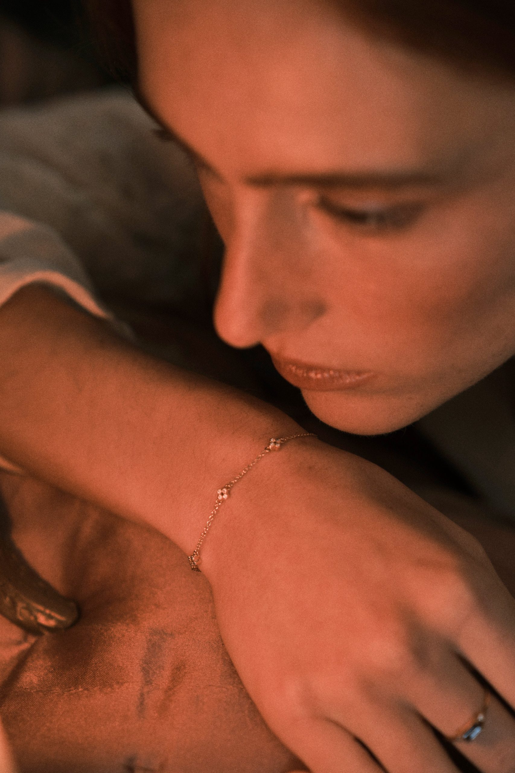 Orionis, une interprétation délicate et lumineuse de la nature. Trois fleurs sculptées en métal précieux sont mises en valeur par des zircons blancs qui scintillent au cœur de chaque pétale, créant une danse de lumière subtile et envoûtante.