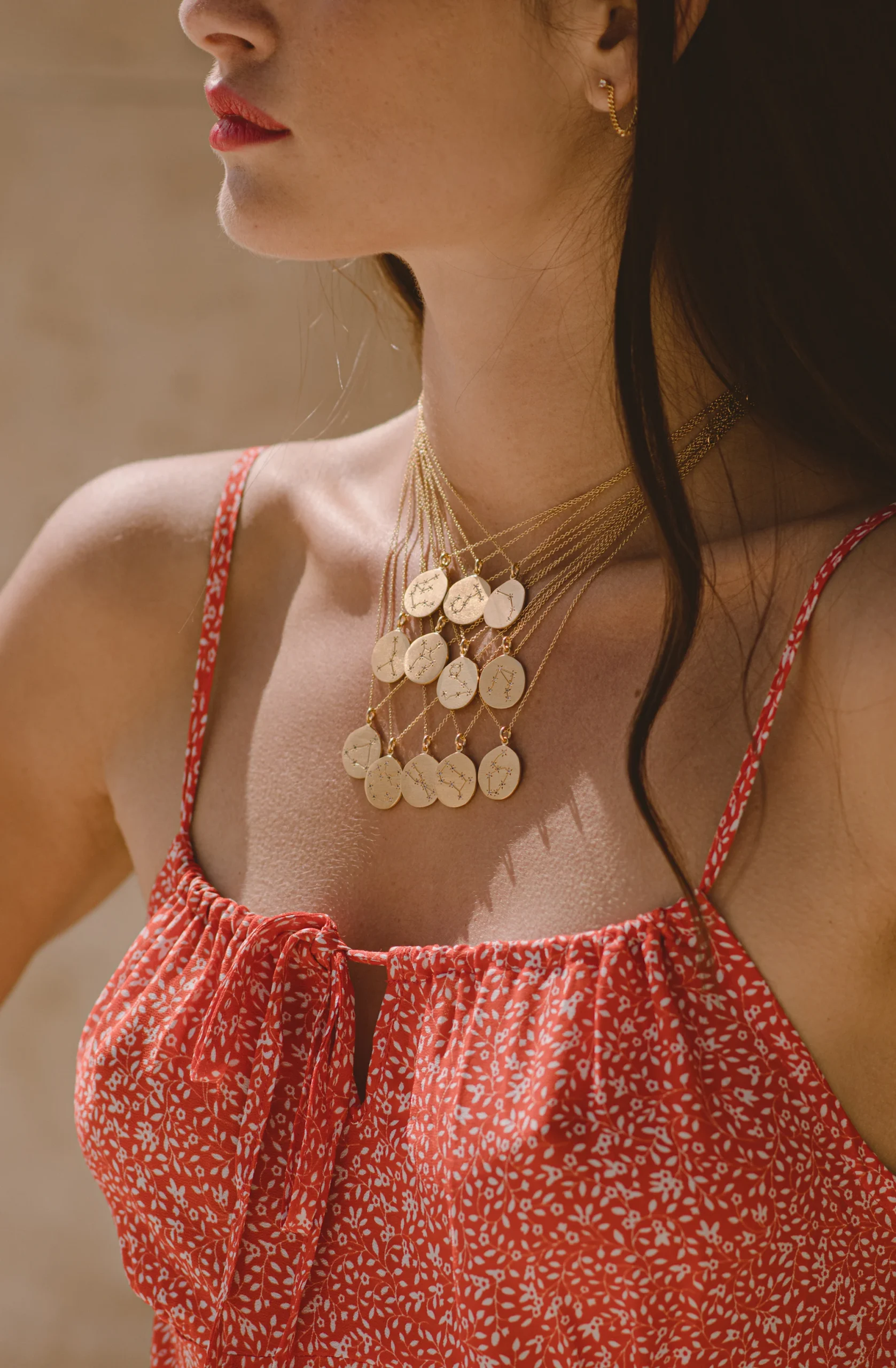 La médaille céleste dont chacun des zircons représente les étoiles de votre constellation, unique par son irrégularité, son aspect mat, légèrement brossé.