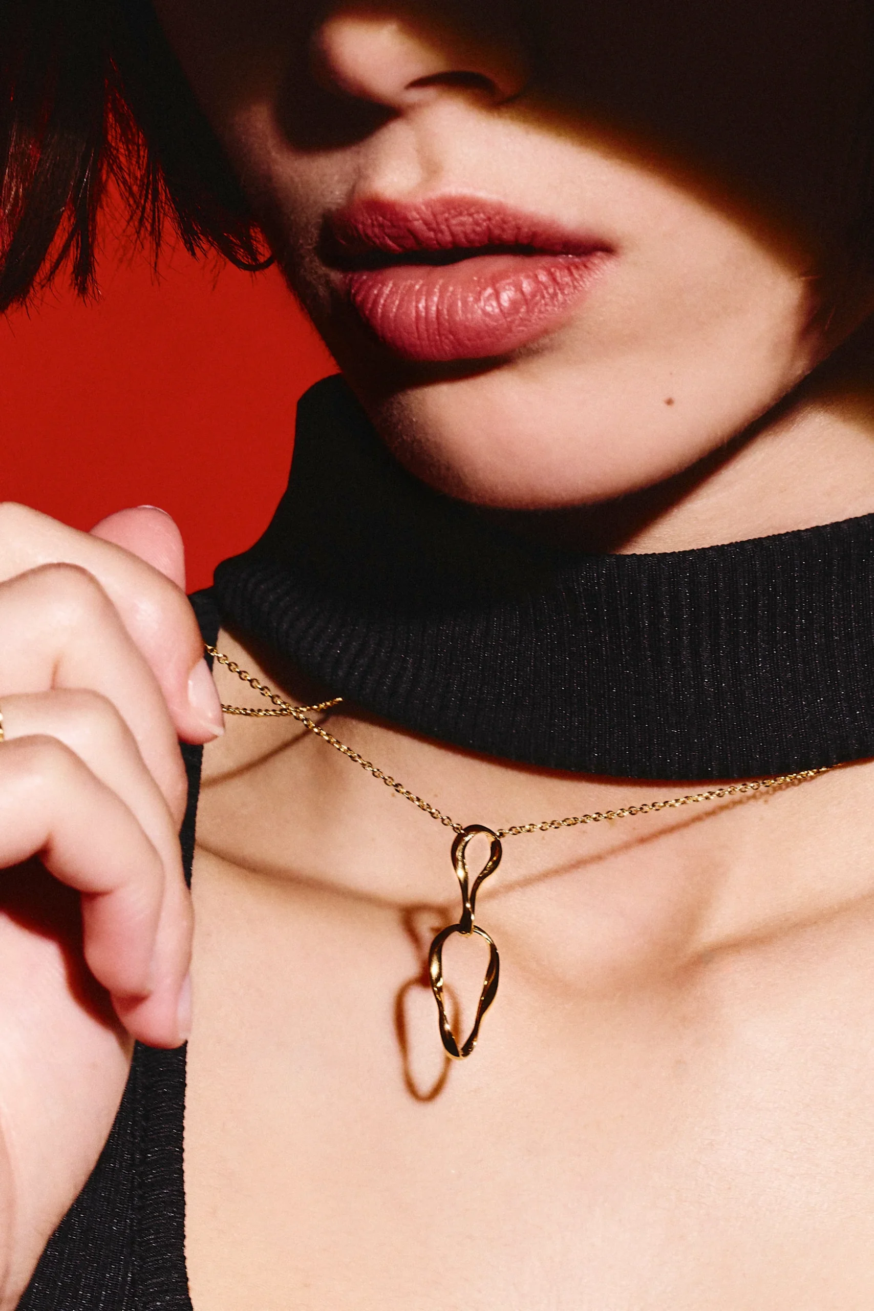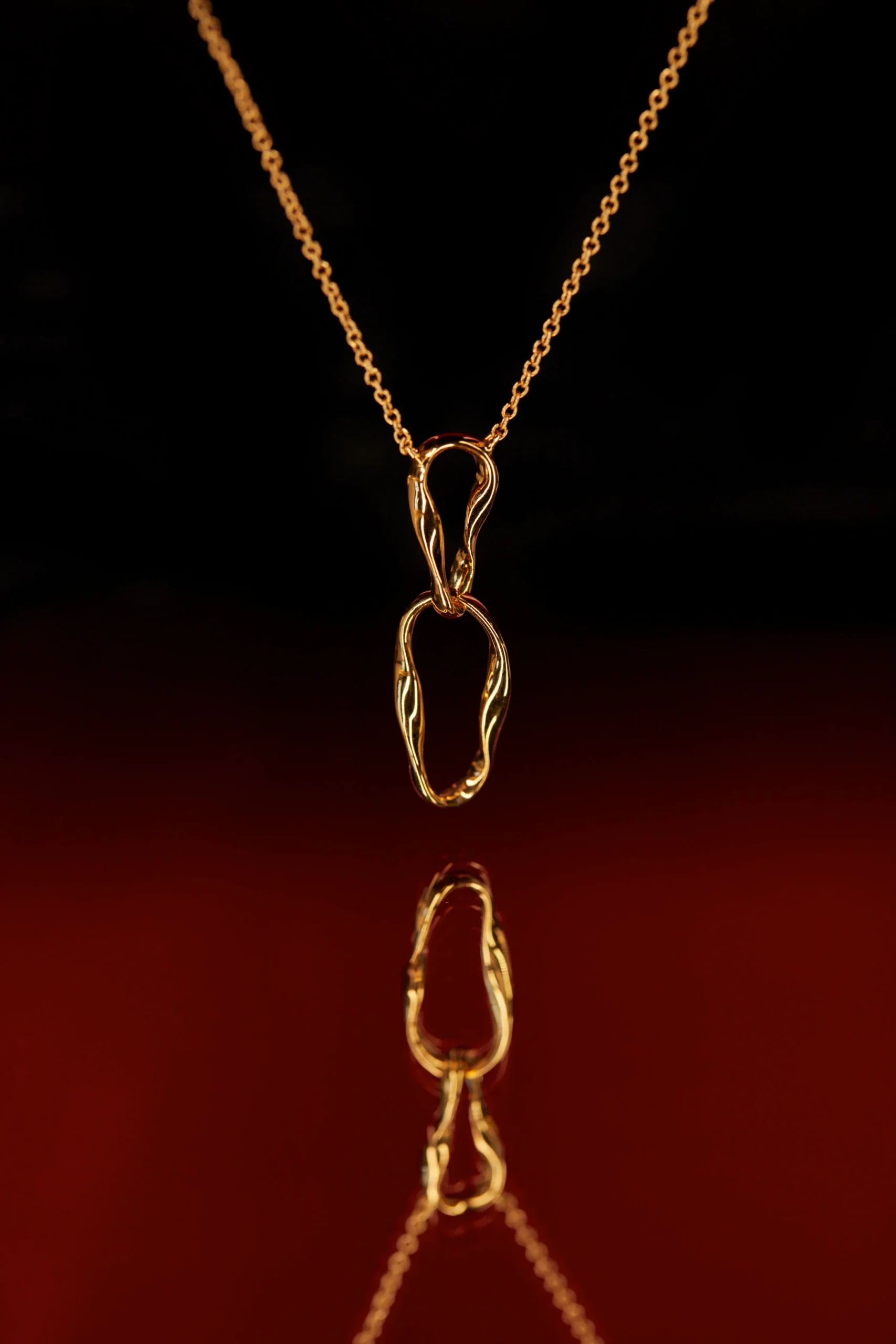 Notre collier Unchained – N°1 est composé d’un entrelacement de deux anneaux organiques et fusionnels.